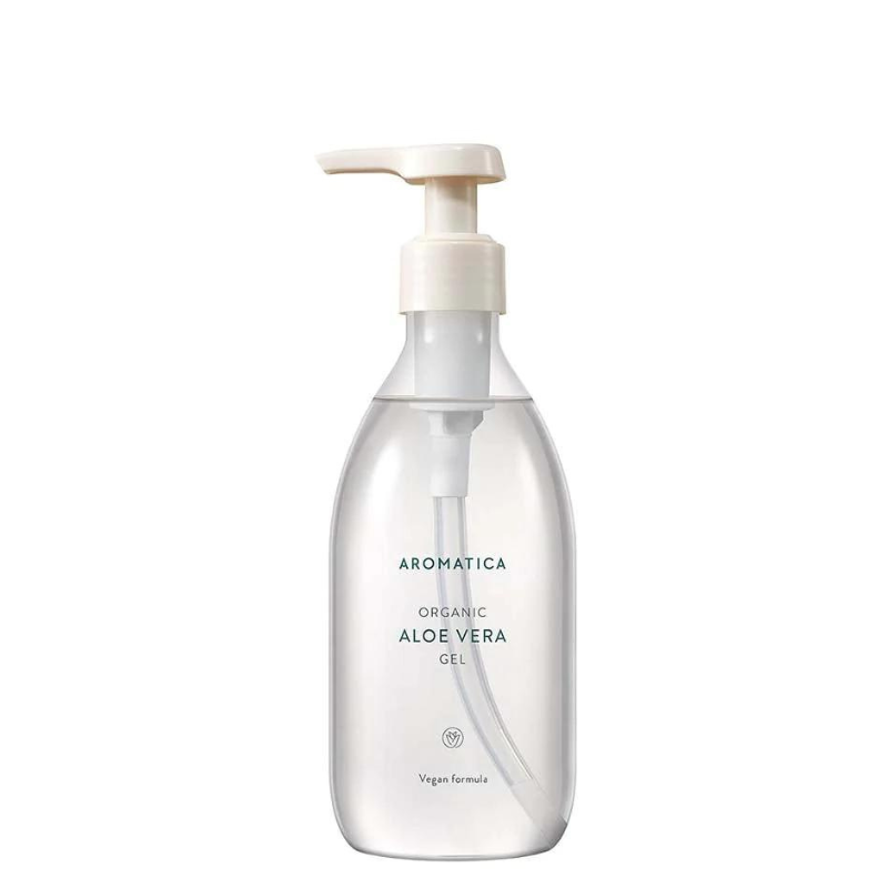 The AROMATICA Organic Aloe Vera Gel is a soothing, clear, and vegan moisturizer that quickly soothes irritated skin. No sticky residue! Made with USDA Aloe vera gel and pure rosemary leaf extract, this gentle gel is 95% organic and perfect for sensitive or sun-damaged skin on both face and body.